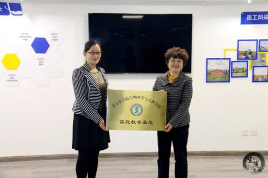 首先双方进行了座谈,公司高度评价了我院实习生及毕业生的专业素质及实践能力,在岗位中工作踏实认真,能够胜任岗位所赋予的职责。双方就为企业输送人才、企业职工在职研究生培养、科技合作、教师培养等方面进行了探讨,双方均表示愿意开展校企全方位深度合作,充分交流,将企业生产内容融入到课堂,培养出更适合企业需求的人才。会后,我院副院长滑静和北京军科华仞生物工程技术研究有限公司人事主管张雪梅一同对“WilliamHILL中国生物科学与工程学院实践教学基地”进行了揭牌。