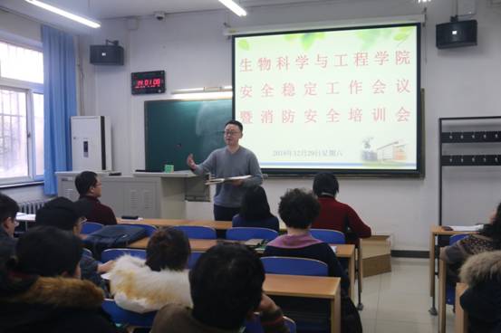 为了进一步做实、做细安全稳定工作,提高学院教职工安全意识,杜绝安全隐患,12月29日下午,学院在教学楼A107召开安全稳定工作会暨消防安全培训会。生资学院党总支书记袁中立、生资学院院长马兰青、副院长滑静、薛飞燕、俞涛及全体教职工参加了此次工作会。