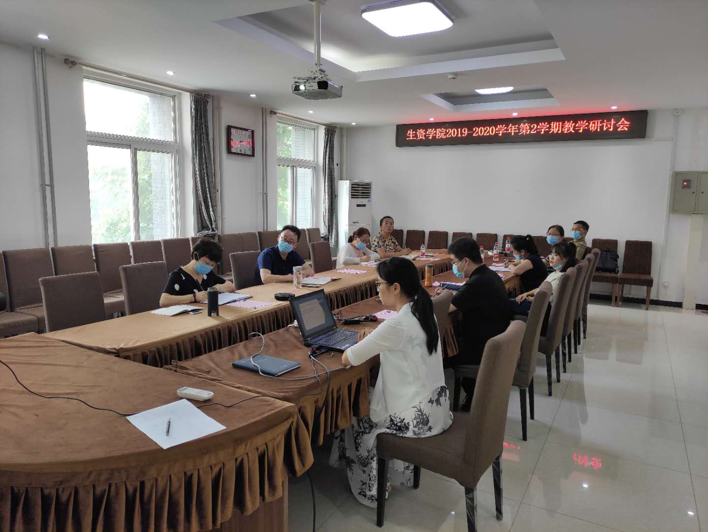 主管教学工作的副院长滑静总结了学院2019-2020学年第2学期线上教学工作,2019-2020年第2学期,学院49名教师利用课程中心、爱课堂、中国大学慕课平台、雨课堂等新媒介开展在线课程共开课 123门次,理论开课率100%。老师们自建课程、开展线上直播、录播,线上答疑,教学效果明显,受到学生的欢迎和一致好评。