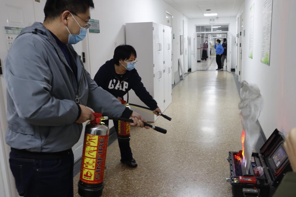 中午12:30,生资楼A座一层发生模拟火情,迅速启动报警系统,发出报警信号,楼内教师立即组织师生按照疏散逃生路线有条不紊的向安全区疏散。大家按照规范动作,捂住口鼻,降低重心,听从指挥,快速、安全、有序的疏散到安全区域。同时,老师们迅速发现火源(模拟火源),拿起灭火器,熟练地进行灭火,保障其他师生安全撤离。