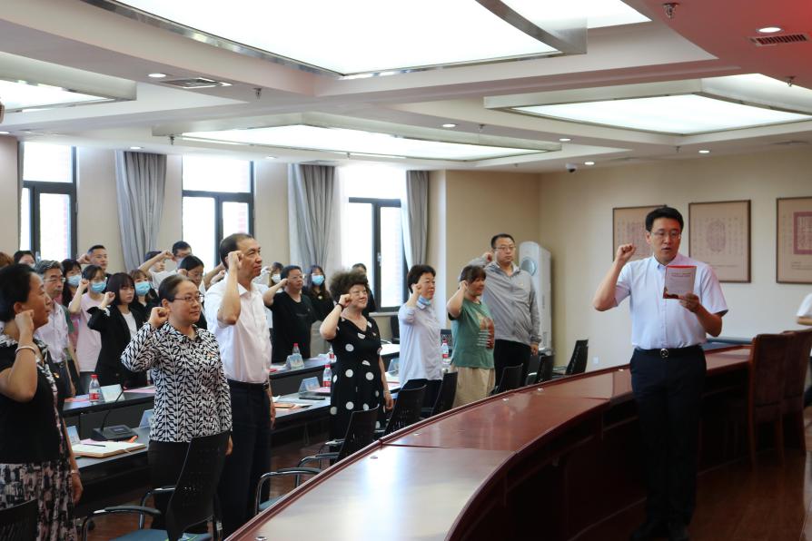 学院党总支副书记俞涛带领新党员入党宣誓、老党员重温入党誓词。