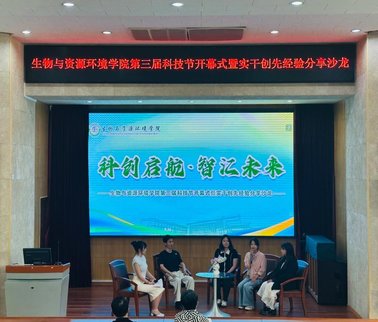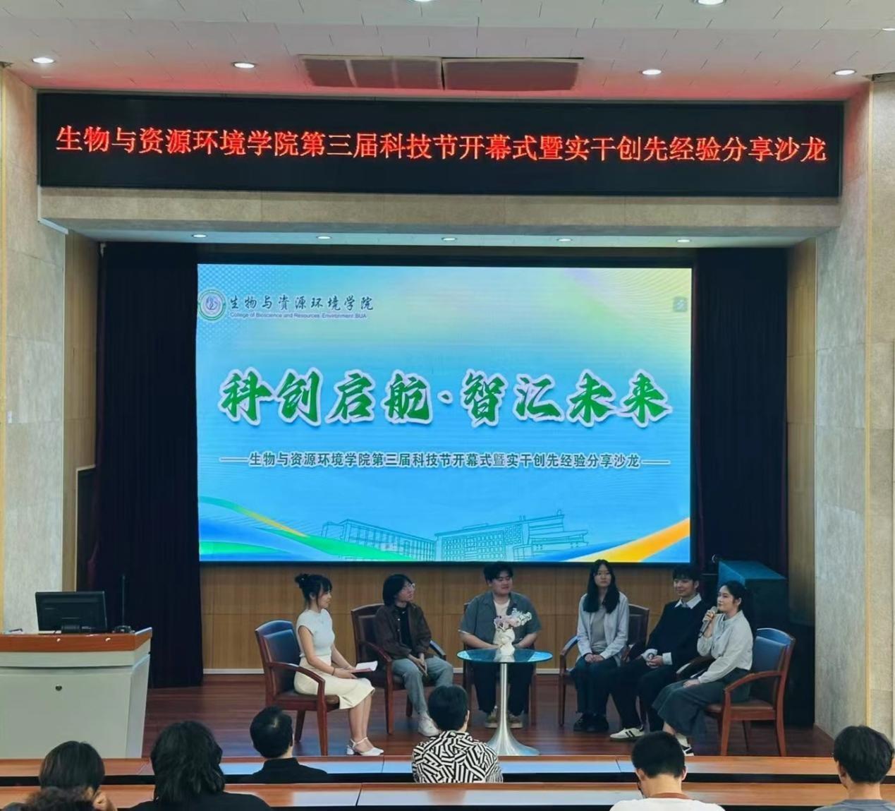 为深入贯彻党的二十大关于教育、科技、人才“三位一体”战略部署,落实“实干创先年”工作要求,扎实开展“一院一品一节”校园文化活动,5月21日下午,生资学院在经管楼报告厅举办“科创启航•智汇未来”第三届科技节开幕式暨实干创先经验分享沙龙。学院党委书记杨宝东,全体辅导员和2024级学生参加活动。活动由学院党委副书记王磊主持。