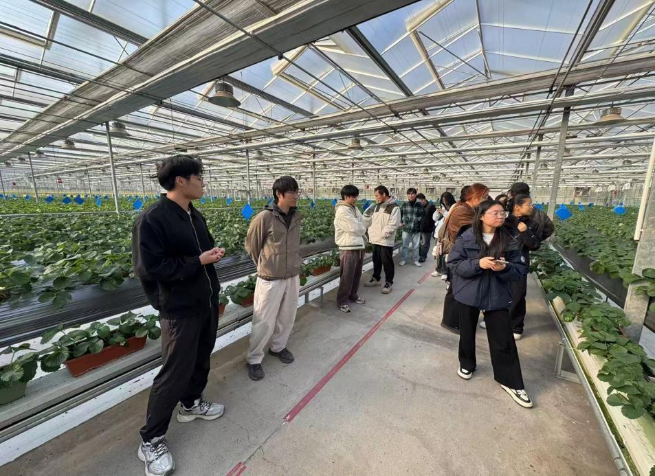 11月3日,植物医生专项班研究生在李迁老师带领下来到北京朝来农艺园有限责任公司开展蔬菜栽培管理与病虫害防控实习实践课程。本次课程首先由朝来农艺园的毛盼龙老师给大家讲解人工智能设施生产控制策略、智能调控模式等农业智慧化应用场景,重点分享了园艺植物绿色防控技术体系。李迁老师则结合理论知识,补充了病虫害综合防治的核心逻辑,指导同学们如何根据病虫害发生规律、植物生长阶段制定科学防控方案,帮助大家快速实现课本知识与园艺生产实践的衔接。在园区内授课,同学们可以直观了解智能温室的精准环境调控的场景,无土栽培与营养液循环系统,展现了现代农业的科技内核。病虫害绿色防控区,例如:黄板诱杀、性信息素诱捕、生物天敌投放等技术的实地应用,将课堂上“预防为主、综合防治”的理念,有助于同学们从理论知识的学习到实践的转化。