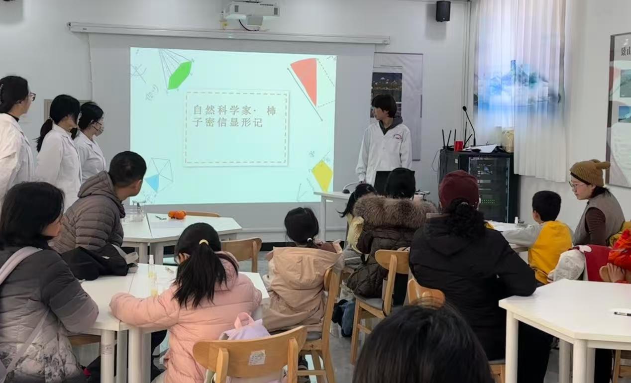 2025年11月景山公园迎来“相约最美秋色”主题月。为呼应这一主题,近日,应用化学本科生党支部的7名党员及积极分子走进景山公园科普中心,以公园内秋日最具代表性的果实——柿子为素材,为小朋友们精心策划了一场充满趣味的《自然科学家·柿子单宁侦探记》科普实验课。活动巧妙地将醉人秋色与化学奥秘相结合,引领青少年从科学的视角深度探索季节之美。本次活动由教师党支部提供技术支持。