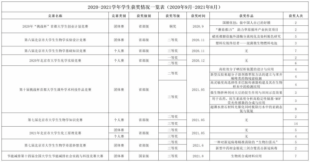 2020-2021学年学生获奖情况一览表(2020年9月-2021年8月)