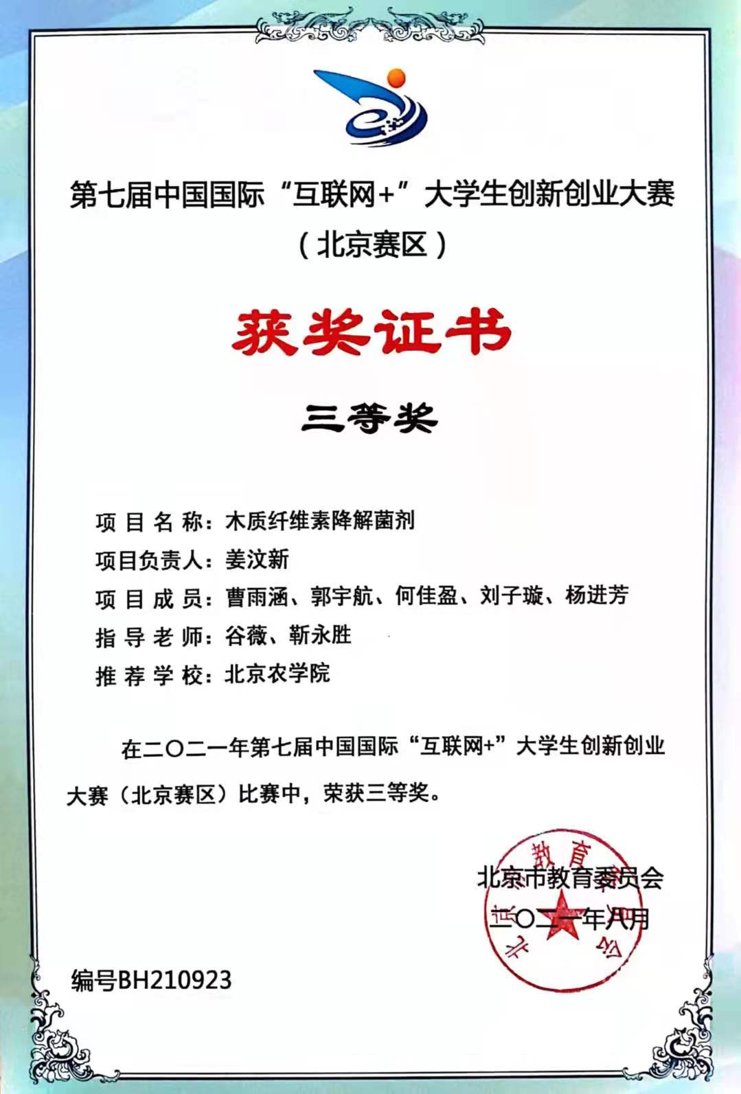 2021年第七届中国国际“互联网+”大学生创新创业大赛三等奖