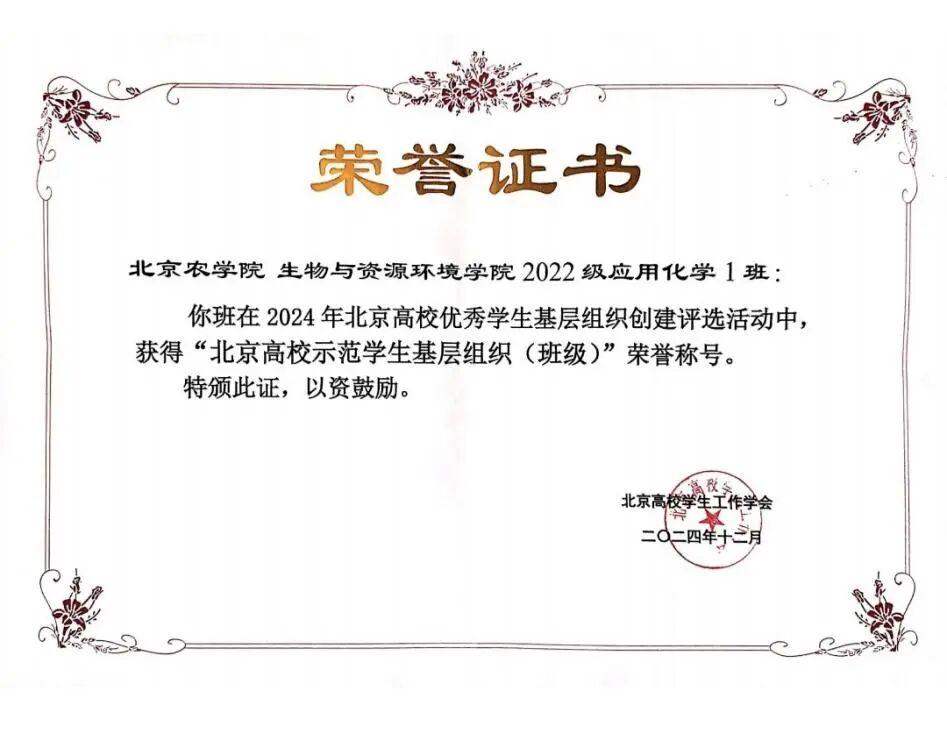 22应化1班获“北京高校示范学生基层组织”荣誉称号