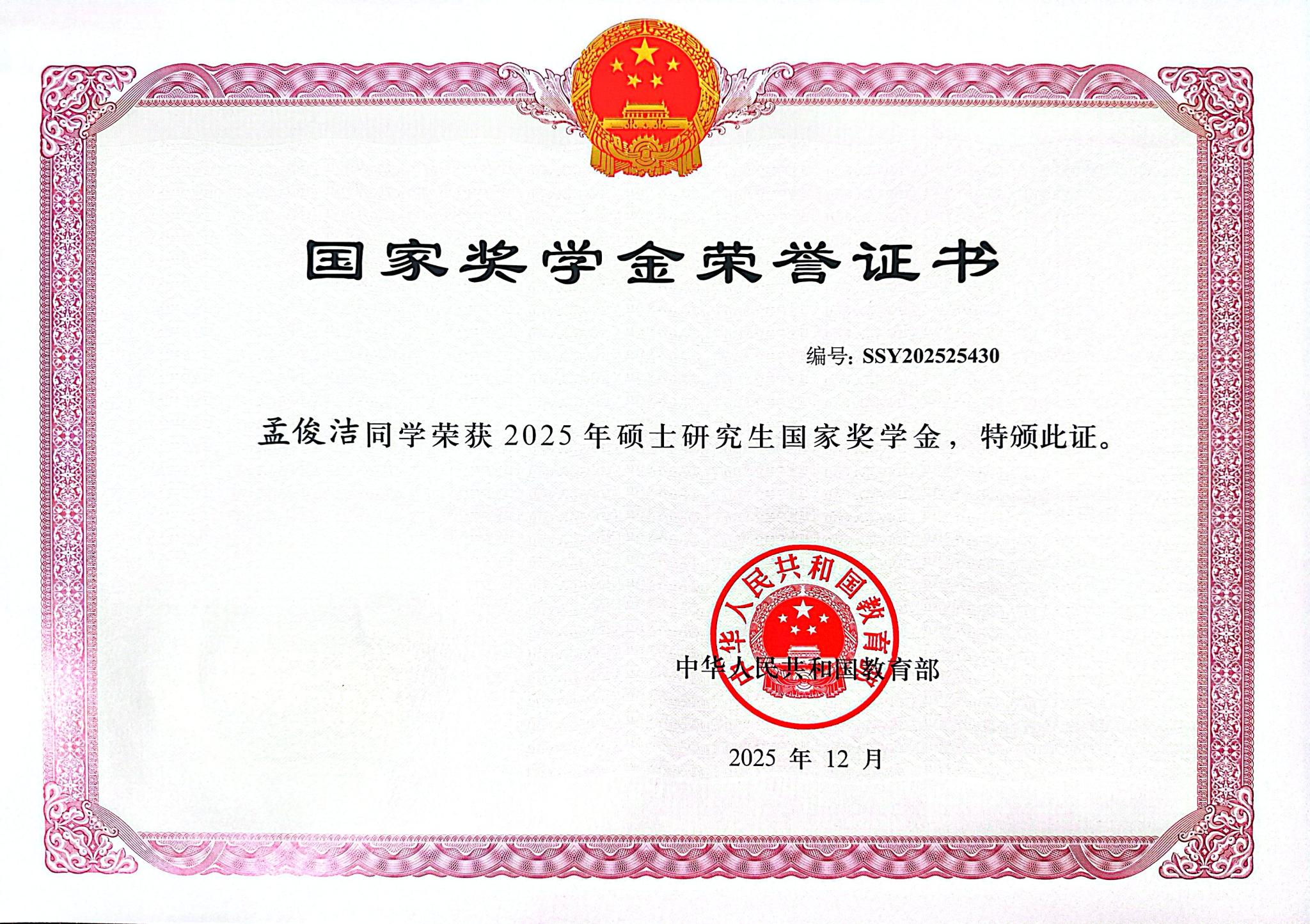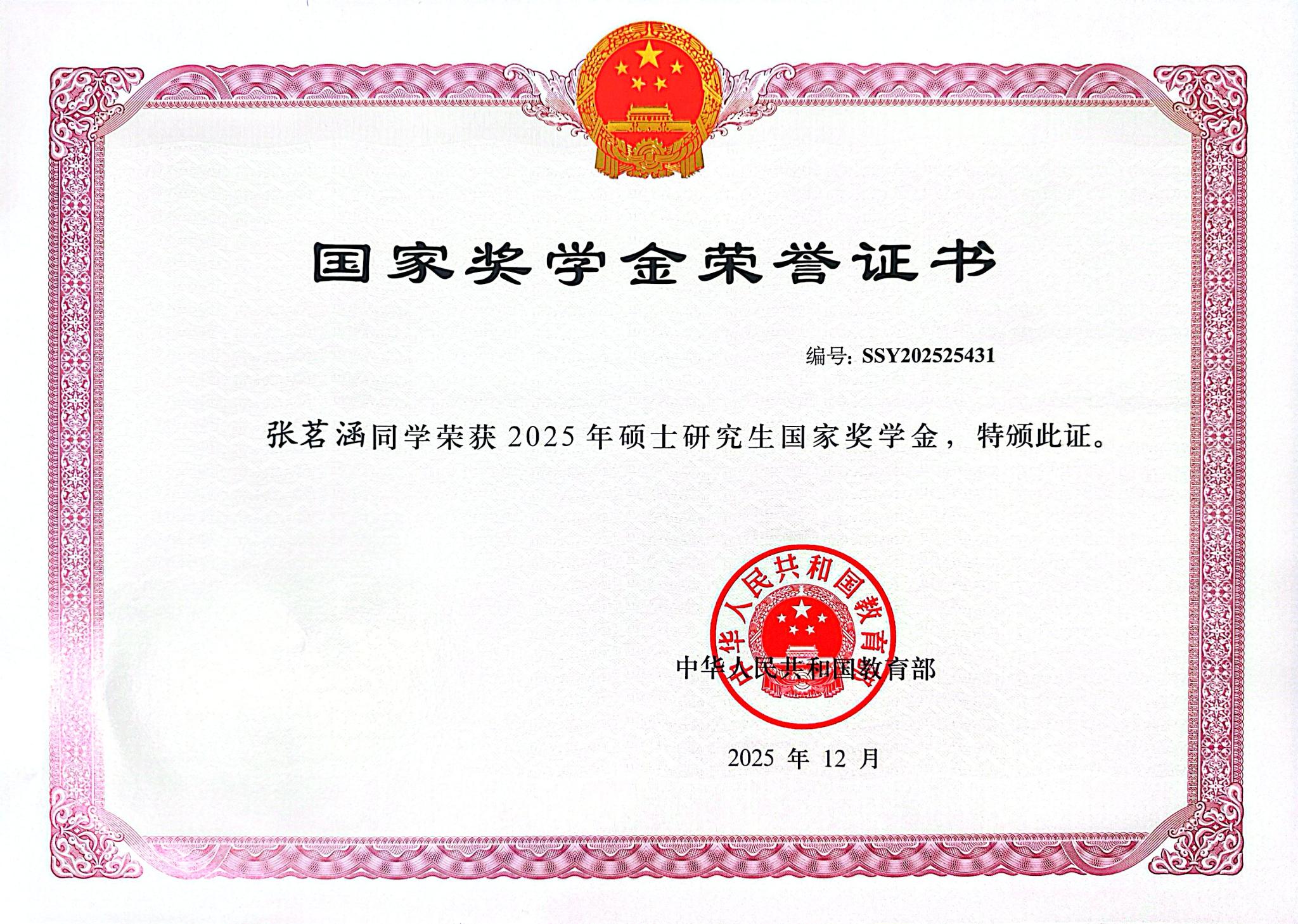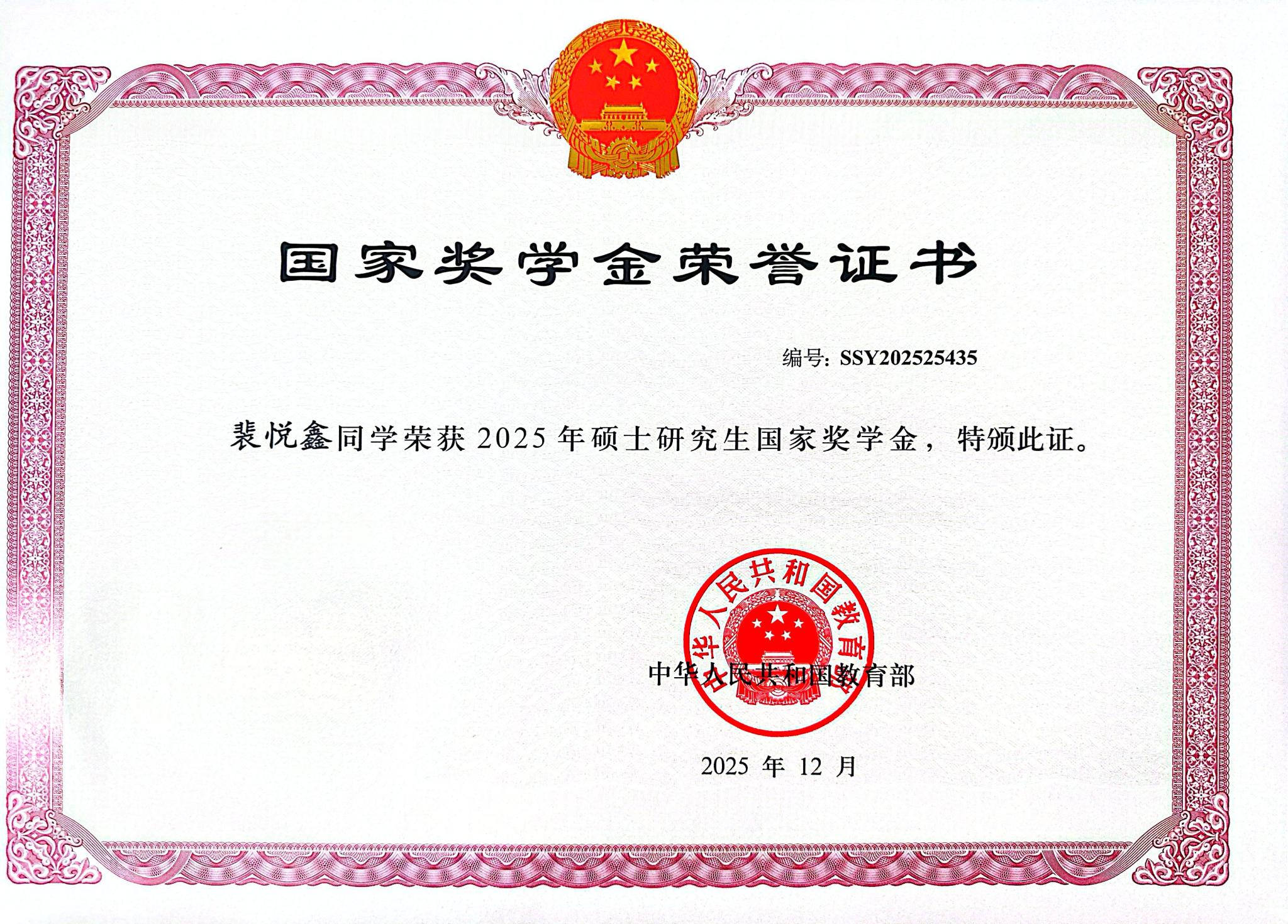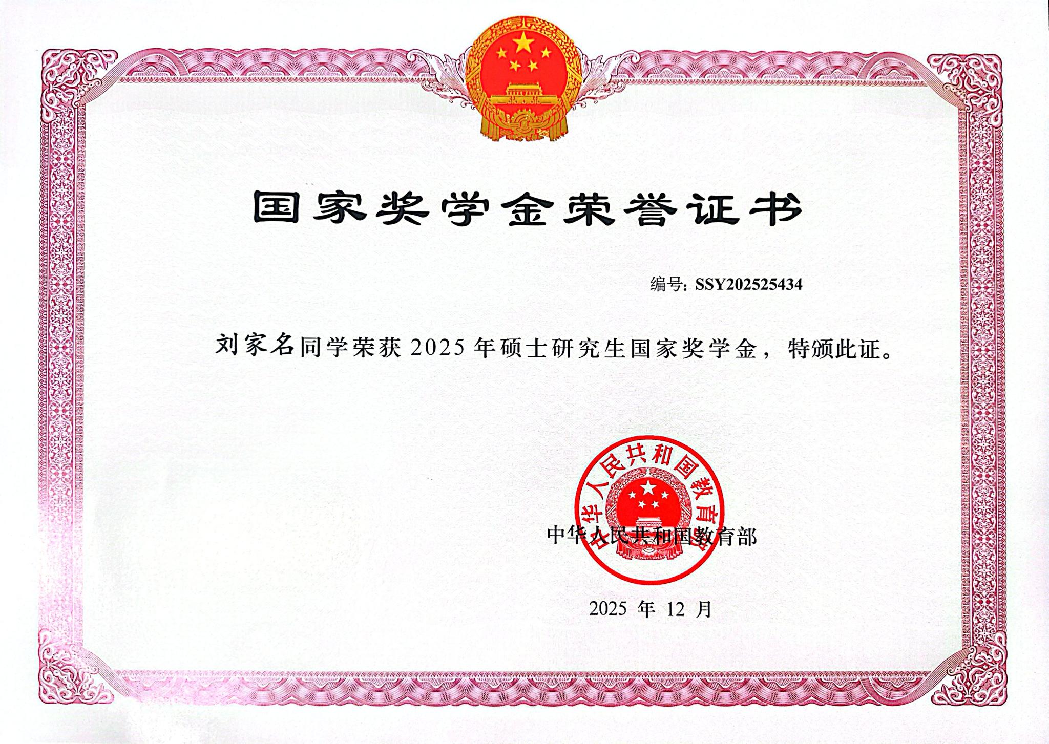 喜报!william威廉中文2025年7位硕士获国家奖学金证书