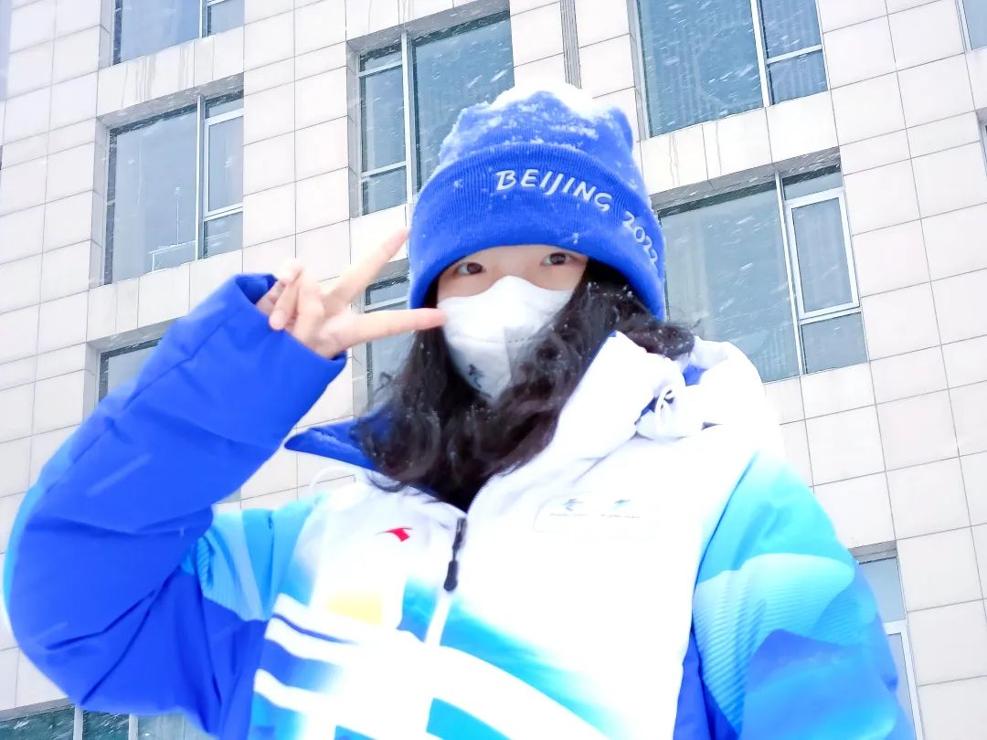 冯秋霞:非常的好,我们过的很充实。闭环前,我们就领了很多很多物资,主要是日用品,像拖鞋、洗衣液、沐浴露、浴巾等等,已经基本满足闭环生活的全部了。后来,我们有幸在五星级酒店生活了整整两个月。房间里有一整面的落地窗,可以坐在沙发上看晚上5-6点壮观的晚霞;有大大的浴缸,可以每晚边泡澡边刷剧;有总能抓住我们味蕾的星级大厨,羊蝎子、猪蹄子等各类肉蛋奶管够。冬奥组委会还在酒店安排了自习室、桌游、乒乓球桌、健身房,瑜伽室等,供我们学习生活。分发有各种各样的物资,当然也包括我最珍惜的冬奥徽章和冰墩墩、雪容融。