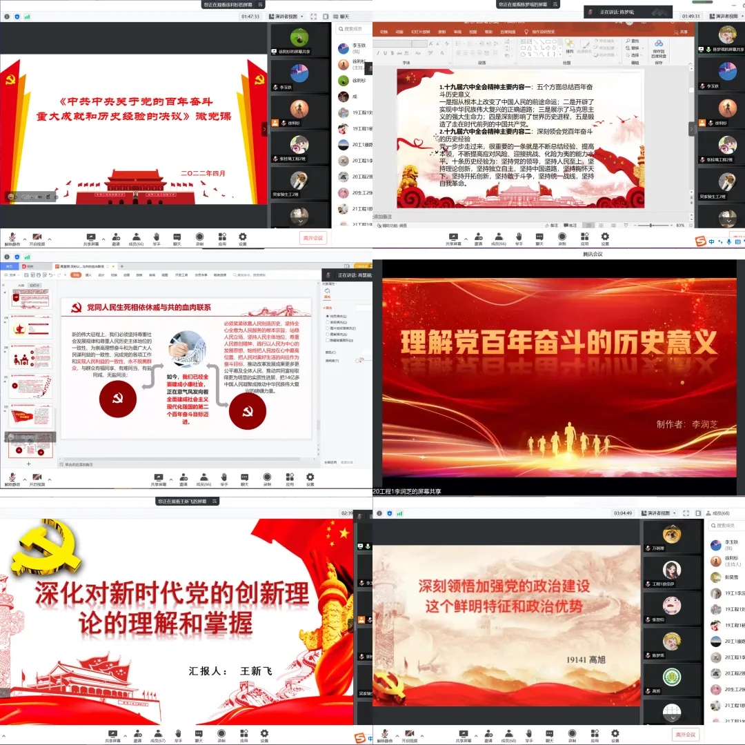 党支部首先组织六名党员开展微党课宣讲活动,宣讲重点结合人民日报“学习贯彻党的十九届六中全会精神”系列评论文章和《中共中央关于党的百年奋斗重大成就和历史经验的决议》。课前,党员们做了精心的备课,课件图、文、短视频并茂,讲述生动有趣。课后满意度评价全部在9分以上。