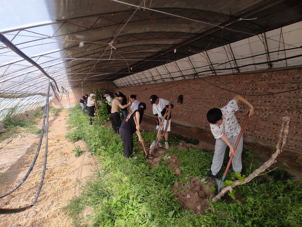 实践活动中,师生们将已淘汰的葡萄树移除,清理大棚、除草松土,为种植软枣猕猴桃做好准备,大家既有分工又有合作,在劳动中认清自我,在组织中体会团队的力量。