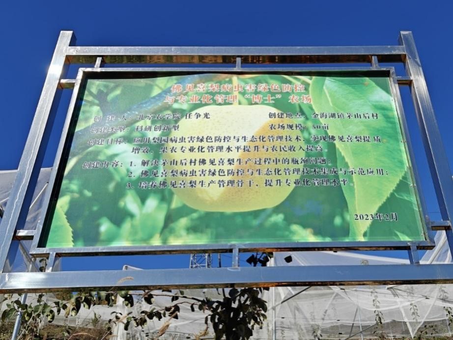 图二 佛见喜梨病虫害绿色防控与专业化管理“博士”农场牌匾