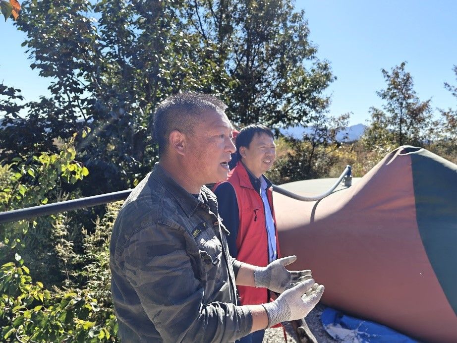 图五 茅山后村书记马小勇(左)介绍专家指导带来的改变