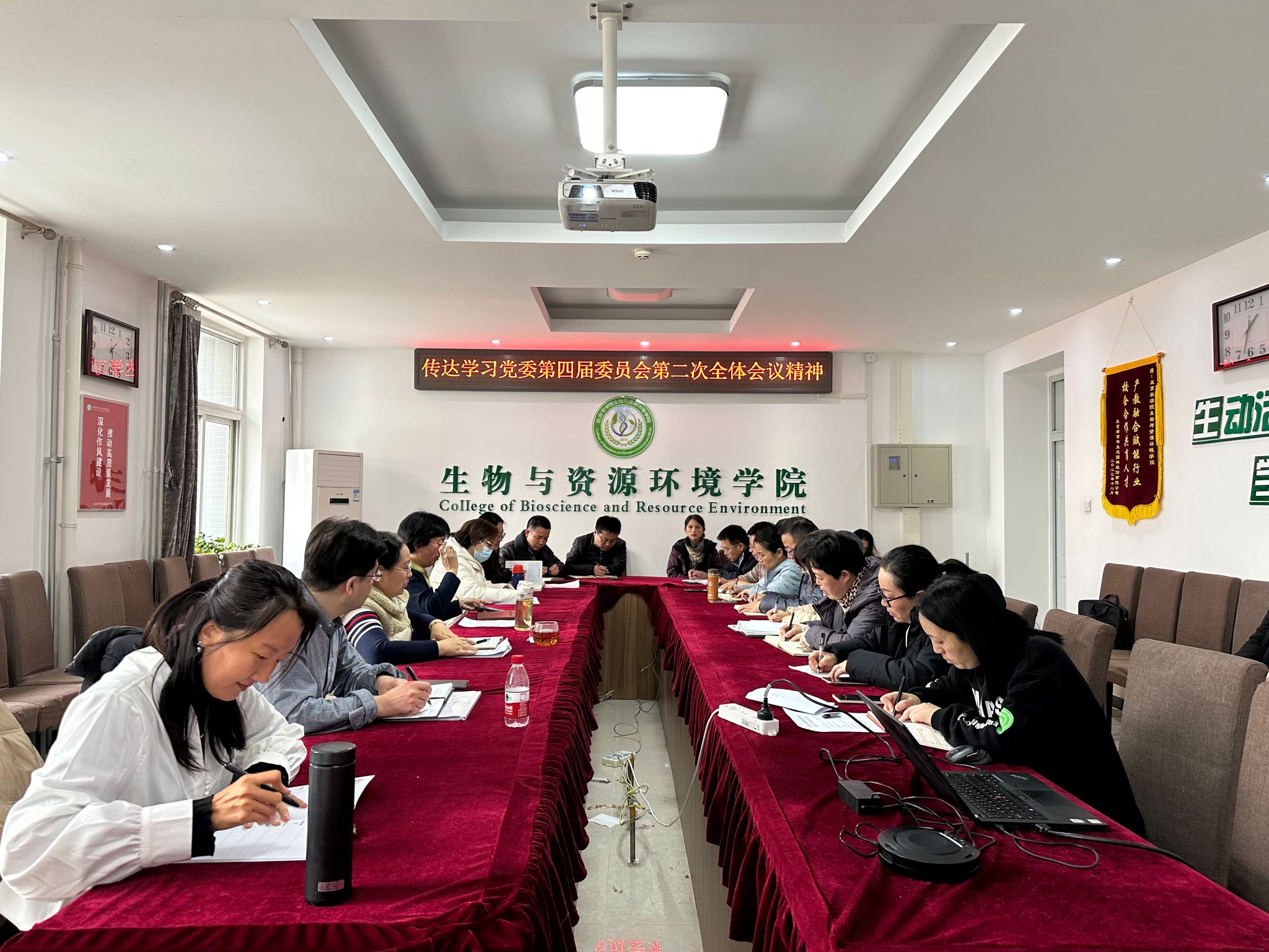 袁中立结合学院实际提出贯彻落实学校党委四届二次全会精神要求,强调要以“狠抓工作落实,推动高质量发展”为主题,以“工作落实年”为抓手,持续贯彻落实学校第四次党代会精神,巩固学习贯彻习近平新时代中国特色社会主义思想主题教育成果,以党的政治建设为统领,落实立德树人根本任务,高标准完成本科教育教学审核评估、承办全国植物保护专业教学创新联盟 2024年年会、推进农业专业博士点建设筹备、依托植物健康研究院和基质产业研究院加强有组织的团队建设和产学研深度融合等学院年度重点工作,持续推进党建工作与业务工作深度融合,以高质量党建引领学院高质量发展取得新成绩,为学校全面建设国内一流国际知名都市农林特色高水平应用型大学做出新的更大贡献。