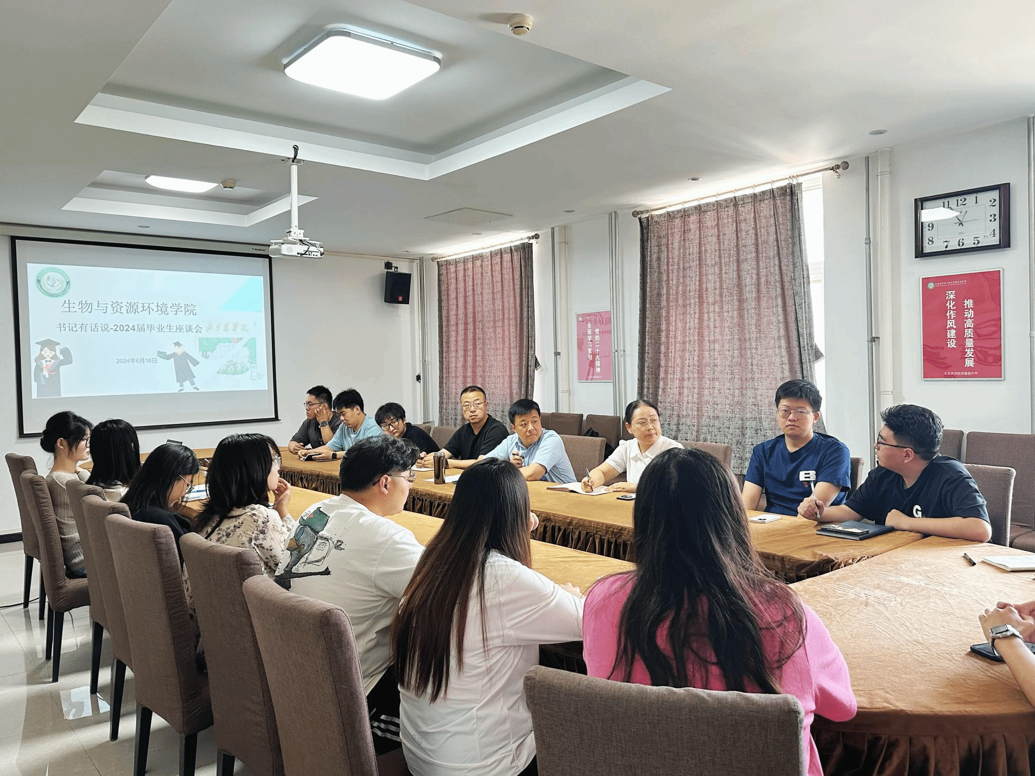 为进一步做好毕业生教育管理和服务工作,听取毕业生对学校和学院发展的意见建议,6月18日,william威廉中文召开“书记有约”毕业生党员座谈会。学院党委书记袁中立,毕业年级辅导员王俭成、申维维以及毕业生党员代表参加座谈。座谈会由党委副书记、副院长王磊主持。