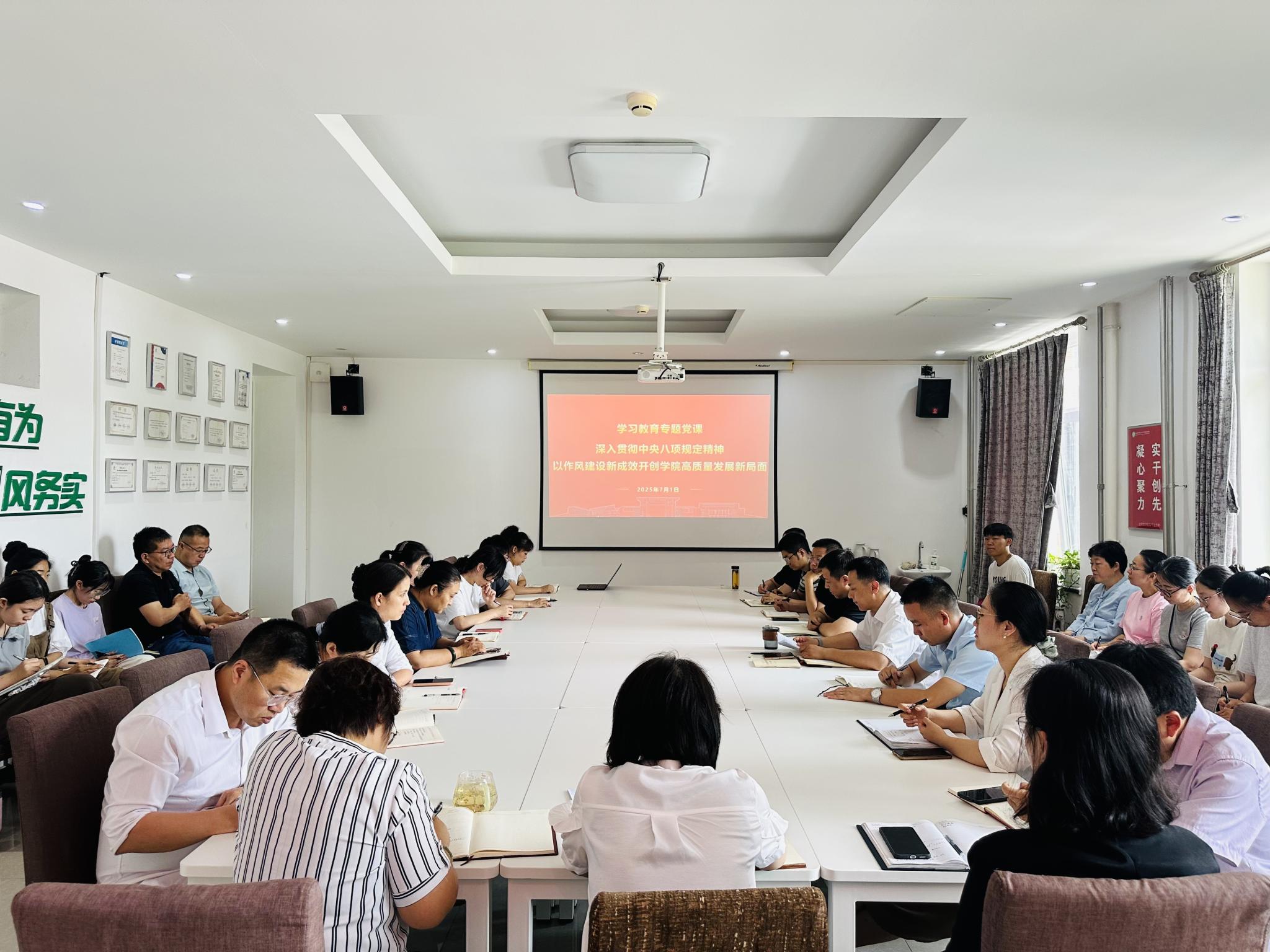 杨宝东强调,全体党员要发挥先锋模范作用,要做到正风守纪,以优良党风带动学风教风院风向上向善,风清则气正,气正则心齐,心齐则事成。今年是贯彻全国教育大会精神、落实教育强国建设规划纲要的关键之年,也是“十四五”收官和“十五五”谋篇布局之年,要高标准高质量开展深入贯彻中央八项规定精神学习教育,准确领会中央八项规定及其实施细则精神的核心要义、实践要求,聚焦主题、注重实效,一体推进学查改。正人先正己,党员干部先从自身做起,审视自己的思想作风、工作作风、生活作风,以更严更细更实的作风和举措推动学习教育走深走实、见行见效,以2025“实干创先年”为抓手,共同营造风清气正、担当作为、实干创先的良好氛围,为推动学院各项事业再上新台阶,为推动学校事业持续高质量发展贡献更大力量。
