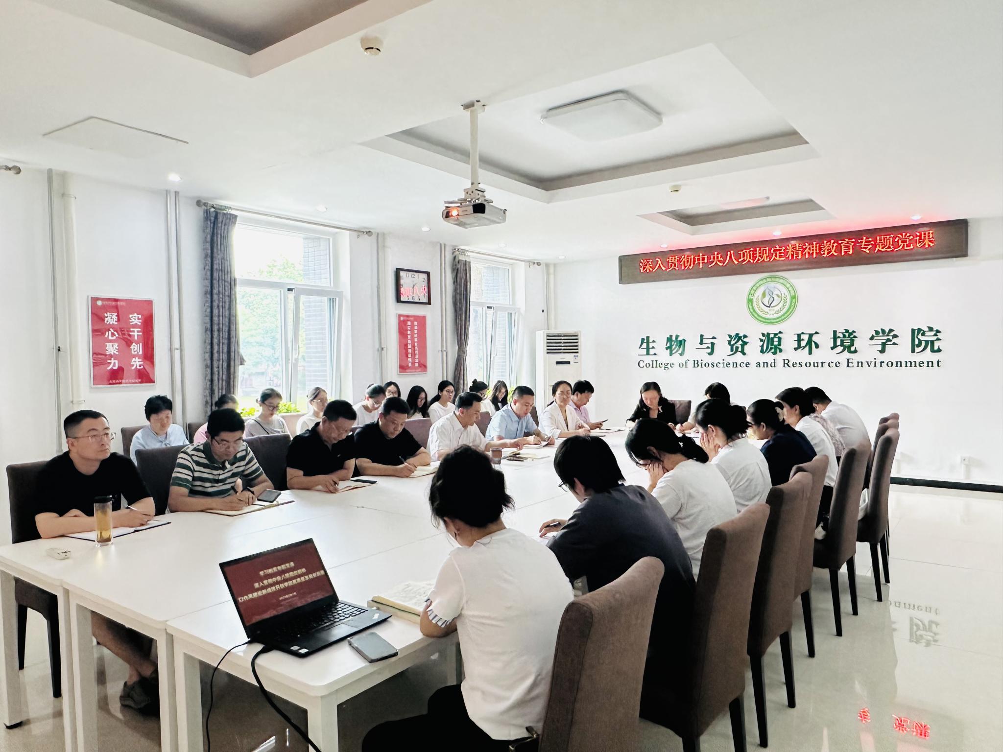 杨宝东指出,要深入学习领会习近平总书记关于加强党的作风建设的重要论述,将作风建设融入日常、抓在经常,以开展深入贯彻中央八项规定精神学习教育为契机,一体推进学风教风院风建设。并从深刻认识深入贯彻中央八项规定精神的重大意义和扎实推进作风建设,助推学院高质量发展两个方面进行讲解。