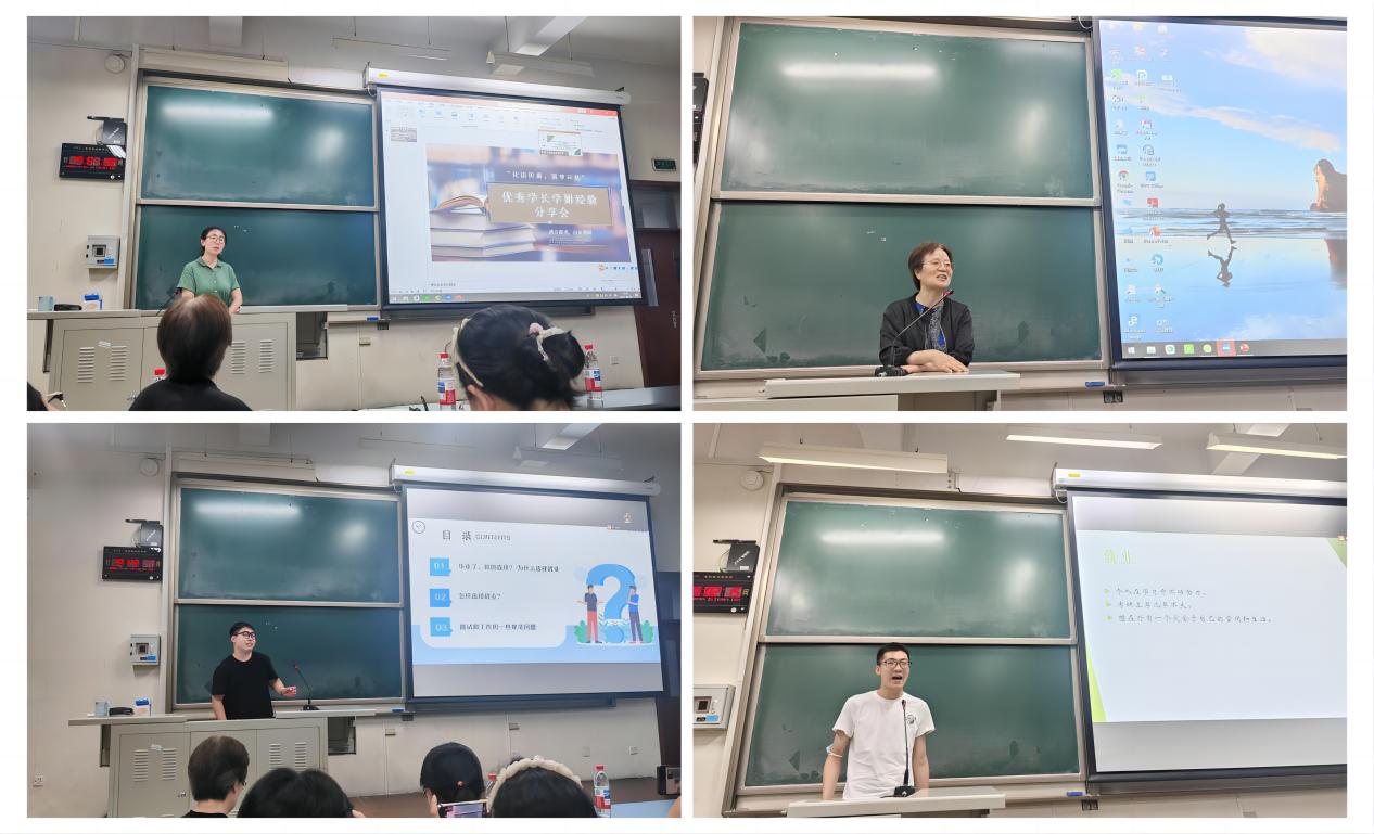 鉴于部分校友在外地工作,且有学生在校外实习,本次分享会采取了线上与线下相结合的形式。在分享会上,朱高生同学率先发言,围绕大学阶段的学习目标设定、自主学习能力培养、课外活动与社会实践的重要性,以及身心健康与生活管理等方面进行了交流。朱高生同学在科研方面表现突出,以第一作者发表了四篇SCI论文,其中包括一篇影响因子为8.9的中科院一区高水平论文。他结合自身科研经历,讲述了如何发现并坚持科研兴趣,并提醒同学们考研是一个长期过程,要调整好心态,切勿盲目随从他人。