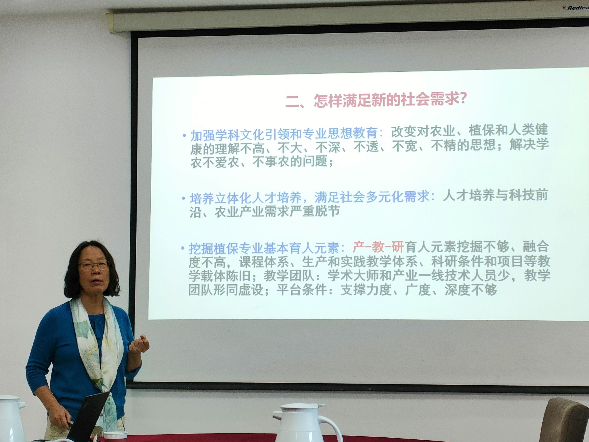 黄丽丽教授以“挖掘产-教-研协同育人元素,满足新时代立体化人才需求“为主题,以多年从事植物保护专业本科学生教育教学工作为例,分享了通过产-教-研融合,构建“名师引领、五联驱动、三有三强”的植保卓越人才培养体系的经验做法;分享了加强学科文化引导和专业思想教育,培养立体化人才以满足社会多元化需求的教育教学理念;分享了自己和团队在课程建设和教学设计中的经验,以及对如何做一个合格的大学老师的理解。黄丽丽教授的讲座思想站位高,教育教学理念先进,内容生动丰富,富有很强的启发性,赢得了在场教师的强烈共鸣。