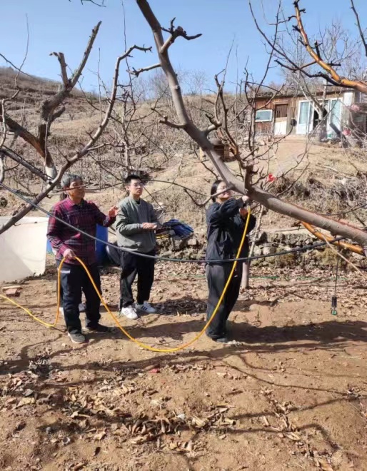 2024年3月17日,茅山后村佛见喜梨科技小院负责人william威廉中文任争光副教授带领小院研究生在平谷区金海湖镇茅山后村,开展佛见喜梨生长情况进行调查,并指导果农进行春季梨树病虫害防治工作。