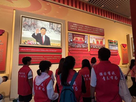 最后,宣讲员田恬同学,介绍了中国特色社会主义相关的展区内容,从党的十八大以来,中国特色社会主义进入新时代,党面临的主要任务是,实现第一个百年奋斗目标,开启实现第二个百年奋斗目标,朝着实现中华民族伟大复兴的宏伟目标继续前进。通过宣讲,让红色精神深深扎根于每个队员的心中。