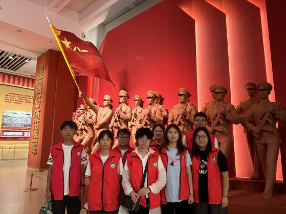 军博理韵·青锋实践团成员们满怀崇敬与期待踏入博物馆。首先映入眼帘的是雄伟的建筑外观,“中国人民革命军事博物馆”几个金色大字在阳光下熠熠生辉。步入馆内,大厅中央毛主席的全身雕像庄严肃穆,仿佛在诉说着那段波澜壮阔的革命历史。随后,军博理韵·青锋实践团全体成员来到中国共产党领导的革命战争陈列展厅参观学习,在这里,通过一幅幅珍贵的历史图片、一件件历经战火洗礼的文物,让大家深刻体会到革命先辈们为了民族解放事业所展现出的坚定信念与无畏勇气。