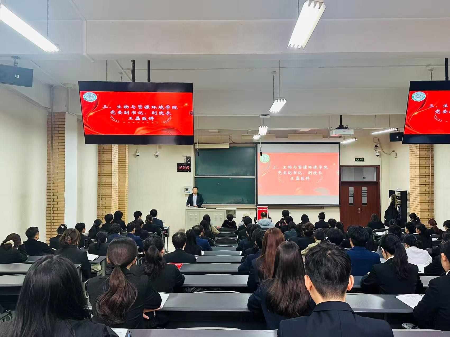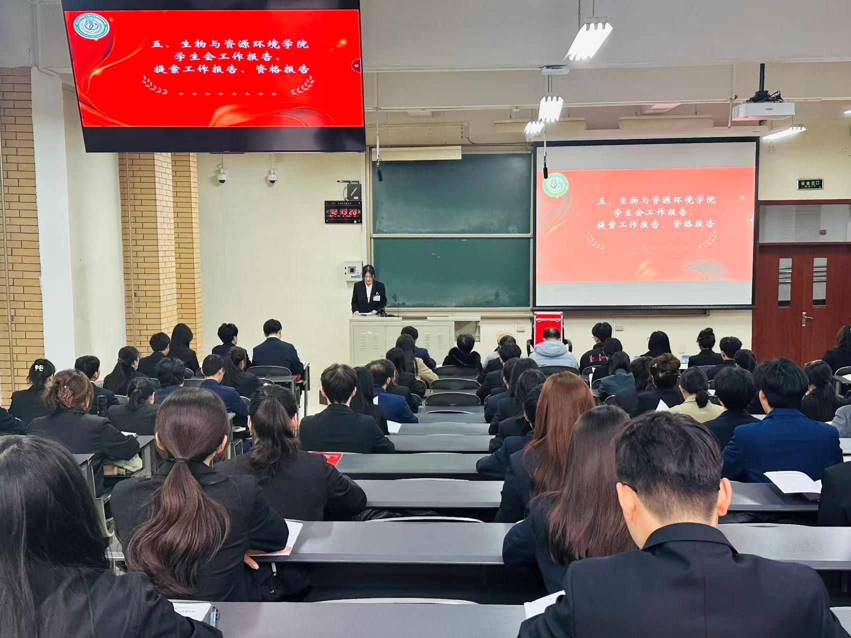 大会在庄严的《国歌》声中拉开帷幕。王磊发表致辞,他充分肯定了学院学生会、研究生会过去一段时间的工作成果。在思想引领上,以“厚植家国情怀,青春告白祖国”等主题活动筑牢青年信仰根基,在品牌建设上,通过官网、“北农生院”公众号等平台构建多元宣传矩阵,全年发布数百篇推送传递学院声音,在服务同学上,以宿舍查寝、朋辈辅导、“宿”造美好宿舍文化节等务实举措解决学生急难愁盼,更在文体活动中带领学子斩获校运会团体总分第一等优异成绩。他鼓励学生组织继续发扬“服务为本,团结稳定,高效工作,完善自我”的优良传统,充分发挥桥梁纽带作用,引领青年学子在学习科研与社会实践中勇担使命,并对全体青年学生提出了殷切期望。