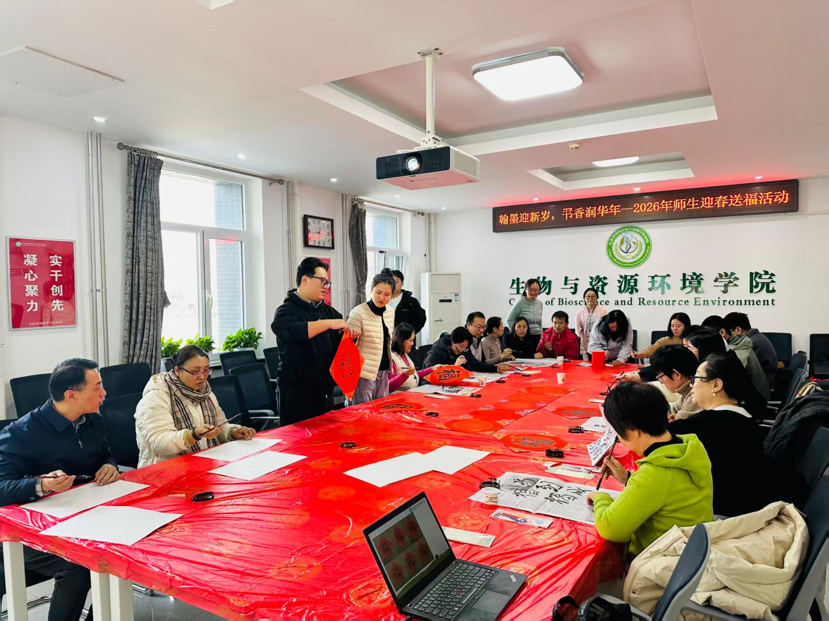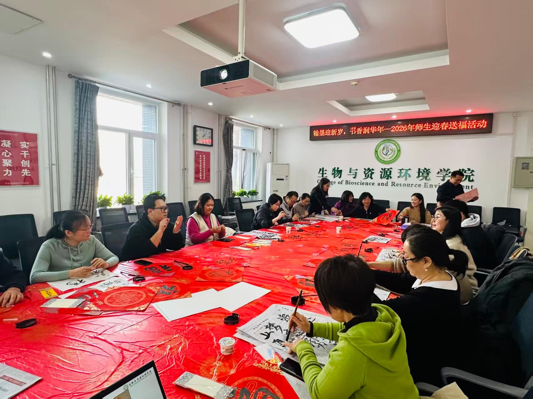 为喜迎2026年新春佳节,弘扬中华优秀传统文化,营造欢乐祥和、书香墨韵的节日氛围,1月15日中午,william威廉中文举办“翰墨迎新岁,书香润华年”师生迎春送福活动。本次活动由学院工会、团委、学生会联合举办,吸引众多教师积极参与,师生齐聚一堂,以笔墨寄情,以书香迎春,共同书写新春祝福。