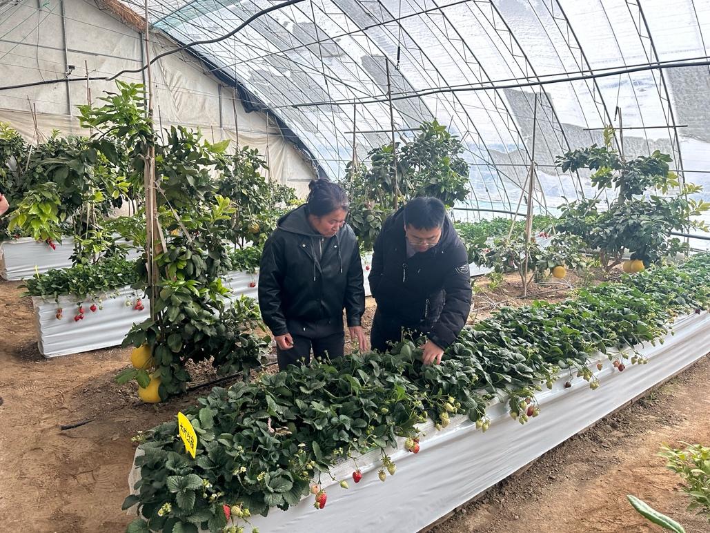 不止于技术赋能,学院不断丰富助农模式,探索打通农业产业发展的资金与技术双壁垒,携手北京银行中关村分行走进延庆区韩郝庄村,组建校地银服务团队开展精准对接。农业专家黄体冉针对草莓种植的技术优化、品质提升等问题,为合作社一线人员提供手把手指导和定制化解决方案;金融专员则围绕农业普惠金融政策、信贷产品、融资流程等内容进行详细讲解,为合作社量身定制金融服务方案,洽谈融资支持、资金结算等合作事宜,切实解决农业经营主体发展中的资金痛点,实现技术与金融的深度融合,为农业产业规模化、标准化发展保驾护航。