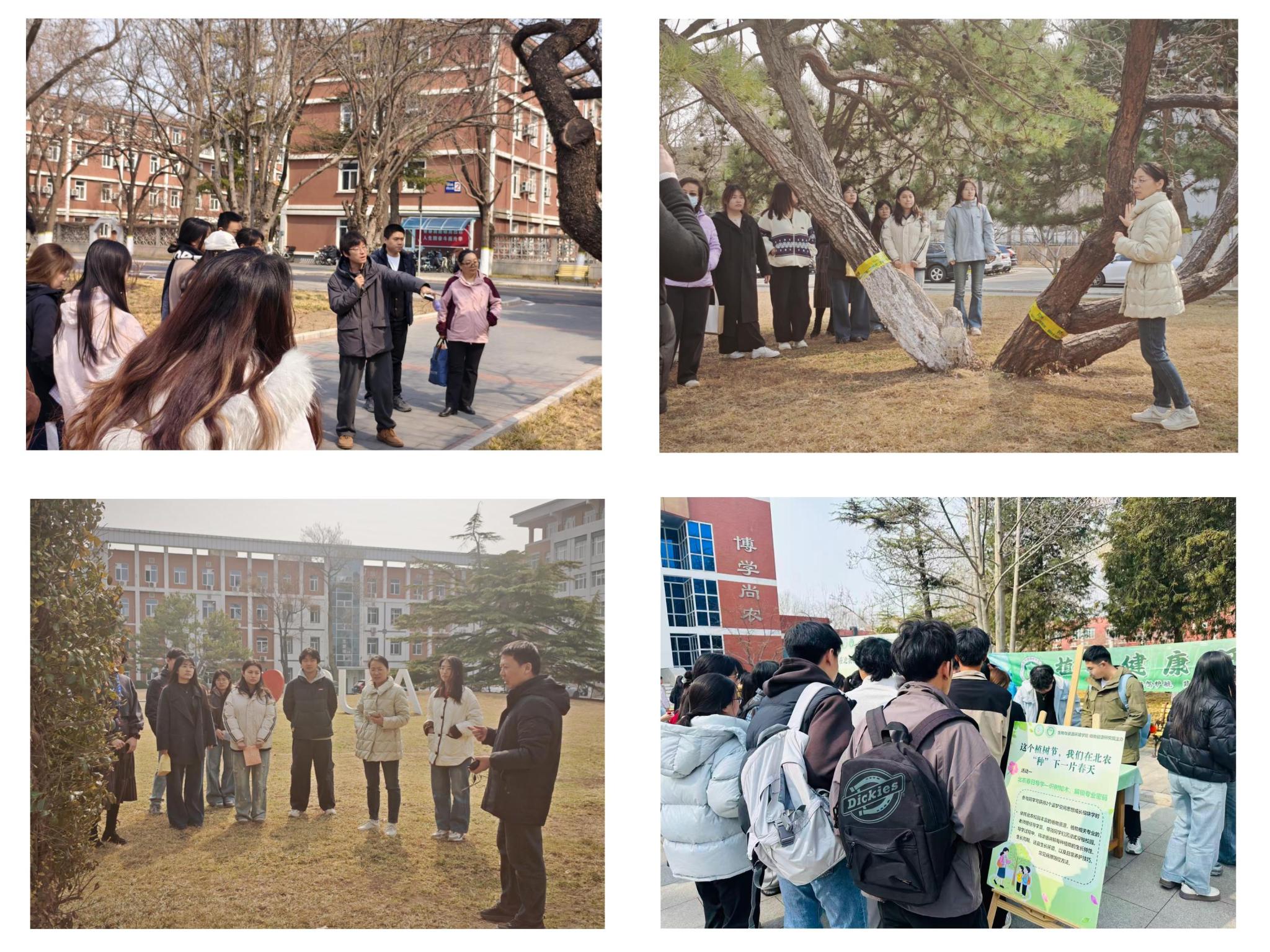 专业导学融实景,植保护绿知识入人心。在“北农春日导学”环节,植物健康研究院的专业教师化身校园“绿色导学员”,带领同学们漫步校园林荫道,以校园内的各类植物为鲜活教材,结合实景细致讲解植物生长特性、生长周期、适宜生长环境等专业知识,重点拆解日常养护技巧与常见病理防控方法。通俗易懂的讲解让专业的植物保护知识走出课堂、融入实景,同学们边走边学、边看边问,直观感受植物健康的重要性,轻松解锁守护绿色的实用技能,筑牢植物健康保护理念。